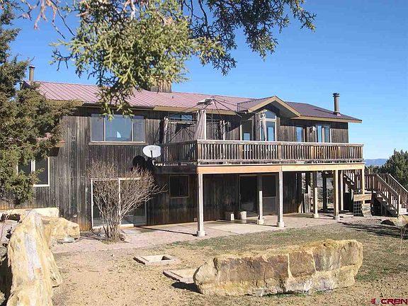 Fabulous Log Hill Location yet convenient to surrounding towns. This tri-level get-away home on 30 Acres includes 2 Br/ 2 ba, lower level master with full bath and living area complete with a wood stove. Up a few steps and you are in a HUGE flex/office/arts and crafts room. There are enough cabinets and counter space for all of your hobbies. The views of the San Juans off of the deck are incredible. The yard area is very unique with huge rocks in place and a brick patio. The detached garage also includes a horse stall and corrals on either end. This bright and cheerie mountain escape is priced to sell. Don't delay, call today on this gem.