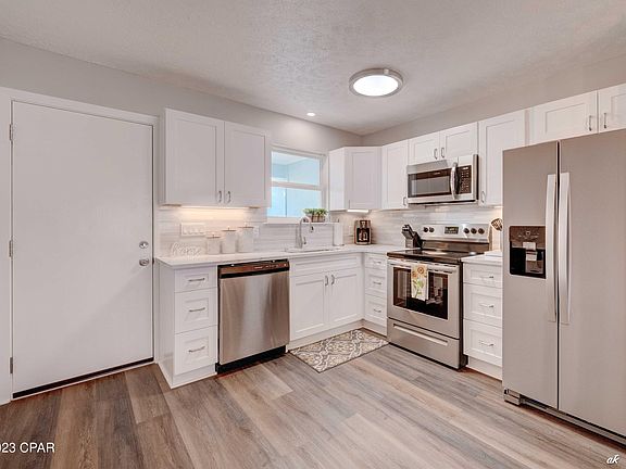 NO HOA AND NO RESTRICTIONS ON RENTALS! Perfect for primary or investment. Eastside Gem!!! Location, Location, Location! Check out this beautiful newly renovated 2/1.5 townhome conveniently located right off North Lagoon and around the corner from the beaches and St. Andrews State Park where you can dock your boat and get to Shell Island. Short term rentals are allowed, we have this pristine townhome furnished ready to go. All NEW Paint and LVP flooring throughout entire floor plan. New kitchen including cabinets, appliances, Quart's countertops and under cabinet lighting as well as new LED lighting. Downstairs powder room finished with shiplap accent and carried over to an accent wall in the living area boasting a bay window. Upstairs 2 large bedrooms with a good size bathroom with new tub/shower combo and vanity. Laundry room refinished with new cabinets and extra-large pantry downstairs as well. Roof 2019 and water heater AC 2022, hooked up to sewer 2022, New fence in back yard for privacy. This would make a perfect rental, second home or primary whatever you need to enjoy our beautiful beaches.