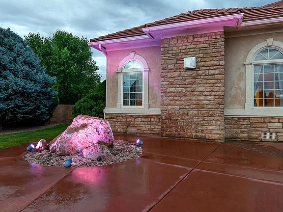TENNIS ANYONE??? One of a kind, custom-built home on .70 sized lot with its very own private regulation tennis court, which could easily be converted to a pickle ball court! Owner inspired features throughout. 2 Fireplaces, massive custom entertainment center in living/great room with wet bar; separate office with built in desk and bookshelves. Marble and tile floors with plush carpeting. MBR features fireplace and programmable custom Martin closet; undercabinet lighting in MBth. Jack and Jill bath between 2 bedrooms, one bedroom has been used as a gym. In the front of the home, there are two water features on the front outside entry; in back, there is a lighted water feature, sauna, and a complete outdoor kitchen with a retractable canopy. The 4th car detached garage features marble floors and is also a fabulous entertaining/party room! Attached garage has custom Osborne cabinets. Central vac system.