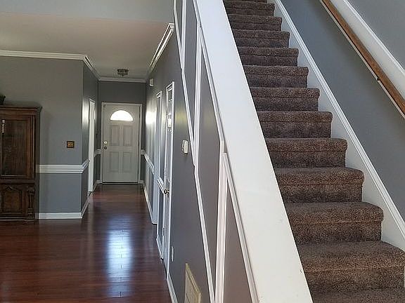 Tile on kitchen, all the bathrooms and lanudry room Hardwood on living and dining rooms New painting and appliances Front is brick