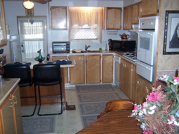 Located in an established family park is this lovingly maintained home conveniently located close to park entrance, pool and playground. It has been tastefully updated with new exterior/interior paint, new flooring, newer appliances, newer siding, new roof and some new windows. Enjoy the covered patio overlooking the low maintenance yard or take advantage of the large amount of storage space available in the custom storage shed adjacent to the carport. So much for so little.