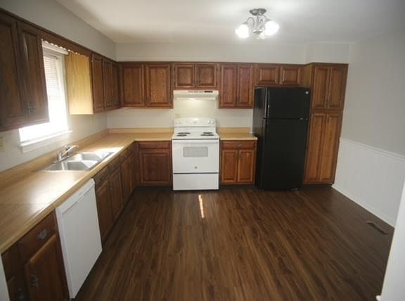 Pretty 3 bed/2 bath home with large yard on a corner lot with a double garage. Inside you will find a large living room and kitchen, separate laundry room and all new flooring throughout the entire home. Tenant pays all utilities and is responsible for lawn care.