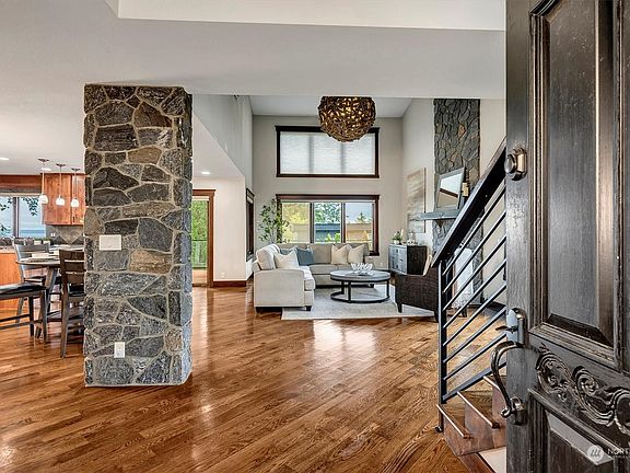 Astonishing year-round coastal style retreat with gorgeous Sound and Mountain views! No HOA! Sophisticated open floor plan, rich and earthy tones of interior materials, clean lines & creative blend of indoor-outdoor living complement the views&remind you of a timeless coastal look & relaxing luxurious living. Expansive great room with soaring ceilings and elegant, stone surround gas fireplace. Beautiful kitchen with updated cabinets; slab counters & stainless appliances. Expansive Primary Suite w/ 5-piece bath & walk-in closet - on its own separate second level. Entertainment room w/gas fireplace, European style sauna & 2 other bedrooms are on lower level. Brand new A/C & water heater. Minutes to waterfront park, ferry & downtown Mukilteo!