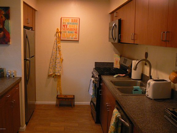 * VIEW VIDEO: https://az.movinghometour.com/22011965_Tucson%20MLS * Conveniently located Gated Midtown Condo Complex. Very clean, move in ready 2bd/2 full baths, first floor unit that looks out over the fenced patio to the pool area. Present owner removed old tile and carpet and has replaced flooring with ceramic wood grained tile throughout the unit. They also repainted at that time to a more refreshing neutral color. All the Frigidaire appliances are an attractive matching set replaced in 2018. HOA includes water,sewer,trash, community pool, roof, building & grounds maintenance and a blanket insurance policy. A big plus is that it also includes heating and cooling for the unit from a master chiller/boiler. The only other utilities for the owner are cable and electric.