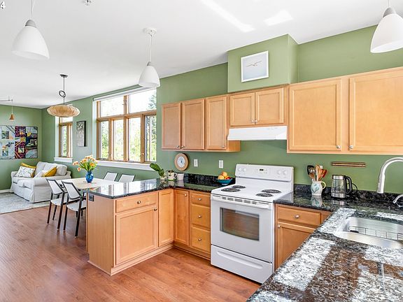 Beautiful, light-drenched, end-unit condo available in the Daybreak Cohousing Community! Enjoy your 848 square foot bird's nest in the sky, with two floors, two full bathrooms, and tree-top views of Mt Hood and Mt St Helens. This condo's many windows face north, east and south, and provide a surprising and unusual gift of privacy. Enjoy cozy, radiant heat floors under new flooring on the main, high ceilings, and gorgeous wood windows. HOA fees cover high-speed internet, all utilities and services, plus amazing amenities. Enjoy the privilege of two complimentary guest rooms for visiting loved ones, a contemporary community house featuring a kitchen and expansive dining areas, along with a spacious laundry room and a well-equipped tool workshop. Ample bike parking, 3/4 acres of lush lawns and gardens with a charming dining patio, a media room, library, indoor and outdoor play areas, and an elevator for seamless accessibility all enhance your living experience. Situated on public transit lines, mere blocks away from renowned eateries and the scenic Overlook Bluff, with the added convenience of being within a half-mile of the light rail line. All common areas are ADA accessible, ensuring inclusivity for all. Don't miss the opportunity to make this exceptional condo your new home! Seller to contribute $3,000 towards buyer's closing costs or rate buy-down.