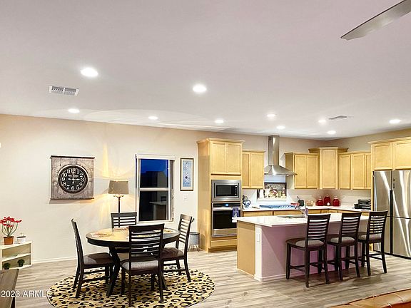 FURNISHED SHORT-TERM RENTAL with all utilities, high-speed internet and streaming channels INCLUDED. Min 1-month rental term. Available September 1st through January 10th 2025. A MAGICAL DESERT SETTING -- Perfect for Corporate, Vacation or Short-Term Rental needs. This beautiful, like-new, fully furnished home in Anthem at Merrill Ranch, Florence, Arizona, is AVAILABLE NOW! With 3 ample-sized bedrooms and 2 bathrooms, the home sleeps 4 persons. It offers an open-concept layout with quartz countertops, stainless steel appliances, and a spacious island/bar. The fully-equipped gourmet kitchen features upgraded stainless steel Whirlpool appliances. The wall oven, built-in microwave, and gas cooktop with a stainless steel hood make meal prep a pleasure! The walk-in pantry has all the small appliances you could want to whip up a smoothie, squeeze some fresh orange juice, or air-fry some chicken tenders. Stunning desert and mountain views may be enjoyed from nearly every room, including the luxurious master retreat with a flat-screen TV, desk, and cozy electric fireplace/heater. The large master bathroom has dual sinks, a large walk-in shower, and a huge walk-in closet. Accessibility options include two power recliners, and the home is all on one level. The gated front courtyard is perfect for al fresco dining, and the large covered back patio is the perfect space for entertaining guests. Close to amenities like the Poston Butte Golf Course, Safeway Shopping Center, and restaurants. No age restrictions to live here -- All ages are welcome! The clubhouse is 5 minutes (1.6 km) away and includes a heated outdoor pool, rock-climbing wall, fitness center, water park, tennis, pickleball, dog park, playground, fishing lake, and MUCH MORE! Rental is all-inclusive. Just bring your swimsuit and sunscreen! Anthem Merrill Ranch Clubhouse membership and amenities are included for up to 4 people. Owner pays all utilities and HOA fees.