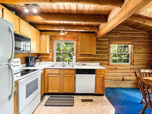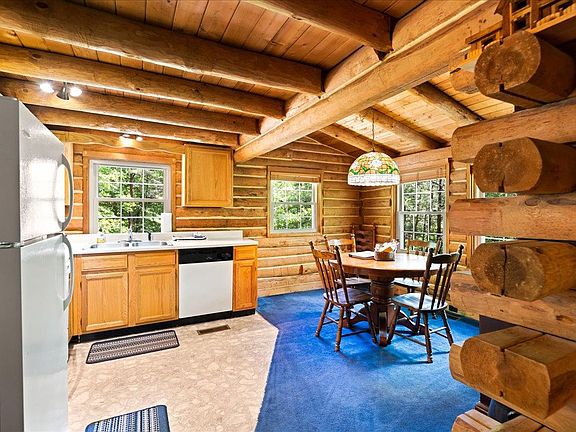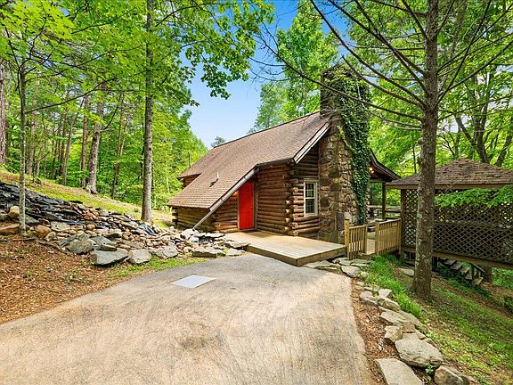 Incredible turn-key investment opportunity with already solid rental bookings for 2021. Cabin comes fully furnished. Gorgeous REAL log cabin at the end of the street...rare secluded feel with total privacy. Real Stone wood burning fireplace. Spacious interior with open eat-in kitchen, bedroom and full bath with tub and shower. 2nd floor added with all new roof in 2014 to add the 2nd bedroom. Entertaining space with sprawling deck and porch space with fire pit and hot tub. Paved drive with extra parking for guests. New heating and air system controlled by Nest in 2020, as well as a new Hot water heater! Limited Showings available for June 12th and 17th.