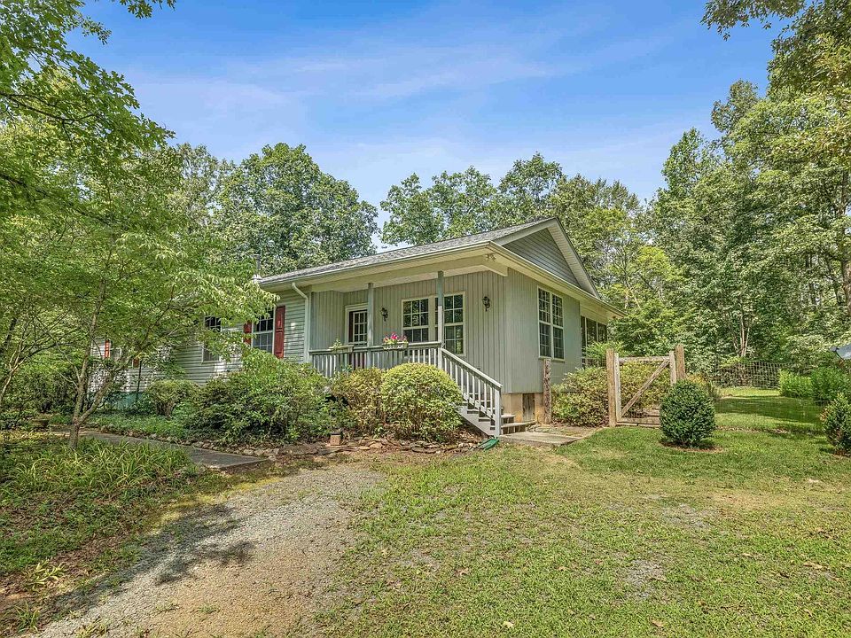 Escape to 12+ private acres in North Garden, just a short drive from Charlottesville. This charming 2-bedroom, 1.5-bath home features warm pine shiplap walls and ceilings, a cozy Acme wood stove, and an open-concept layout perfect for relaxed living. The home is equipped with two HVAC units for efficient, zoned climate control, along with a whole-house generator (2014) and a brand-new hot water heater (2025) for added peace of mind. Enjoy evenings on the screened porch or entertain on the stone patio overlooking the fully fenced backyard, complete with garden beds and a storage shed. Whether you're looking to downsize without compromise, start a homestead, or simply enjoy the quiet beauty of rural Albemarle, this property offers the perfect blend of comfort, character, and privacy.