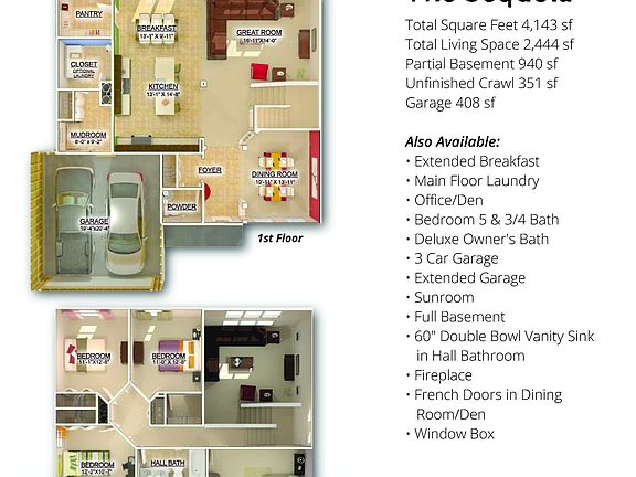 One of our most popular floorplans, this Sequoia 2 story features a 3 car garage, large spacious kitchen, open concept main floor with fireplace and upstairs loft making this home amazing! Front yard landscaping and a full basement is included. This home is filled with upgrades such as laminate plank flooring, ceramic tile in the bathrooms, 42 inch white painted maple cabinets, recessed lighting, and architectural trim package. Owner's bath has walk in shower, garden tub and double sink vanity. The kitchen has recessed can lighting, large island and walk in pantry, granite countertops and a stainless steel microwave and dishwasher.
