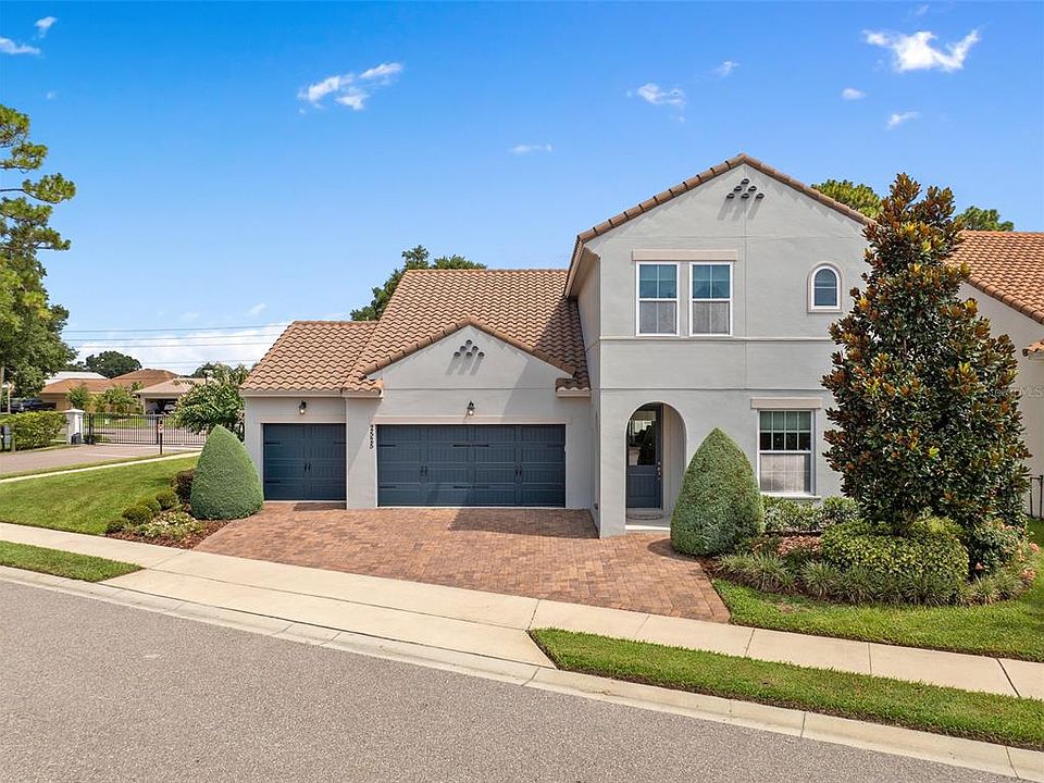 PRESENTING A SPECTACULAR LUXURY RESIDENCE! Welcome to the Estates at Sweetwater Golf and Country Club, a gated Ashton Woods community. This exquisite 4 bedroom, 3 bath home is nestled on a rare and expansive corner lot of almost .25 acres. Boasting a Mediterranean tile roof, 3 car garage, a stone paver driveway and rear entertaining area, this home is the epitome of class and style. Step through the front door onto luxurious wood floors in the foyer and formal dining room. Then on to the open concept kitchen with premium white cabinets, scalloped tile backsplash and striking granite countertops. The built in convection oven and microwave, and the oversized island with seating, can make dinner parties a joy to host. The living area is open and spacious with a vaulted ceiling, multiple windows and large sliders leading out to the backyard retreat. Enjoy the backyard under the covered lanai, complete with a ceiling fan for the lovely Florida summers. Or just relax in the jetted hot tub after a long day on the golf course. The primary suite is spacious and bright, with a high ceiling and a large walk in closet complete with custom built in storage. The primary en-suite features a double vanity, a spa like shower with multiple heads and a separate water closet. Upstairs opens to an ample bonus room ready for a home gym, office, or game headquarters. The three upstairs bedrooms feature large closets and down the hall is a full bath with a shower/tub combo. Pull right into the CLEAN 3 car garage with plenty of room for big toys. The home has an in-wall pest control system for convenient treatment. HOA dues include common area maintenance, home landscaping, lawn fertilization and lawn pest control. The care of this home truly shows in person... DO NOT WAIT on this one!!