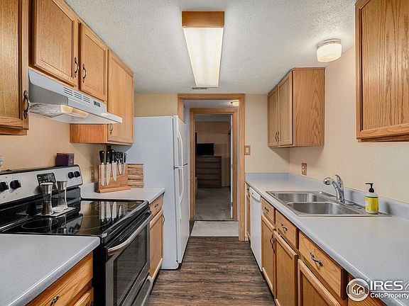 Beautiful move in ready condo! fully enclosed patio with baseboard radiant heat to make it a cozy spot for whatever you desire. Newly completed floor and trim throughout. there is no lack of Closet space in this condo! Seller is offering to pay 1 year HOA or the equivilent in seller concessions. In addition there is a dedicated large storage space in the basement of the building. Development is adjacent High Line Trail and has gated access directly onto the trail. The HOA has a pool, tennis courts and a cub house.. 2 parking spaces one is covered and deeded. This is an amazing opportunity at a reasonable price.
