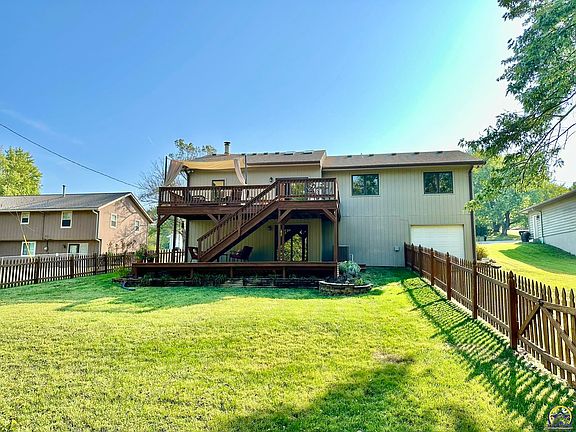 Beautiful Shawnee Heights walkout ranch with many updates!! This home has been well loved inside and out. Some of the many beautiful updated finishes include a kitchen remodel by Ball Custom Kitchens, a primary bath remodel with new vanity and tub surround, newer Pella windows, furnace A/C, some newer siding, resurfaced driveway and a new roof in 2014. You'll also love the amazing lower level 23 X 26.8 workshop with 8ft door that can also be used as a 3rd garage space there is a covered lower deck area for shade or enjoy the cool fall evenings with beautiful fall foliage from your main floor deck overlooking beautiful tree'd private land to the rear. There is plenty of room for growth with extra storage in the garage and a garden storage shed in the backyard. Located in the SHES school zone on a quiet street in a great neighborhood on a large lot with fenced backyard. Make your showing appointment today! This one won't last long!!