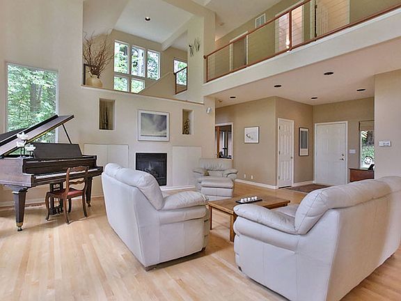 Peaceful setting & sought after privacy are found in this wonderful contemporary home offering light,bright floor plan vaulted ceilings & walls of windows providing natural light & gorgeous tree views.The 4th bedroom is in the fully contained apartment on lower level that is currently rented.Den/office on main level has closet & could be used as addt'l bedroom.Extra lots of record w/ potential for additional buildable parcel.