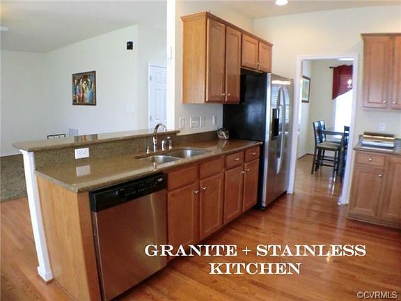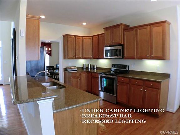 This home is for the family on the GO!! Fabulous Sailboat section of Edgewater @ the Reservoir includes lawn maintenance! Terrific open floorplan includes features you want -- Hardwood floors main level, Granite + Stainless kitchen, recessed lighting, ceiling fans, TV wiring everywhere!, formal dining room, dramatic entry and lovely plantation shades on every window. Master suite with cathedral ceiling + fan. Ceramic master ensuite with ceramic shower, dual vanity and soaker tub. All on a cul-de-sac lot. Convenient to all commute lines-- Powhite Parkway + 288-- Excellent Chesterfield County Schools-- Close to dining, recreation and shopping.