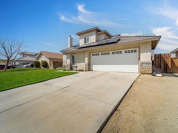 Fantastic two-story home with fully paid-off solar panels, offering long-term energy savings and lower utility bills; no lease or extra payments to worry about! Even better there is a NEW HVAC, tankless water heater, and a new roof! This four-bedroom home features vaulted ceilings, updated flooring downstairs, and an upgraded kitchen with stainless steel appliances. The downstairs bathroom has also been updated, and there's a full bedroom and bathroom on the main level—ideal for guests or multi-generational living. A bonus room off the spacious two-car garage offers great flex space for a home office, gym, or extra storage. Upstairs includes three generously sized bedrooms and two full baths. Out back, enjoy the above-ground pool just in time for summer. As an added bonus, the washer, dryer, and refrigerator are included in the sale. Located in a friendly neighborhood, close to shopping and with easy freeway access for commuting. Call for your appointment today!
