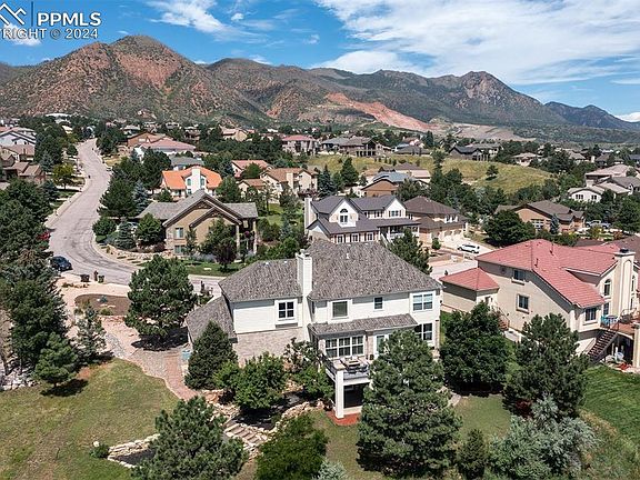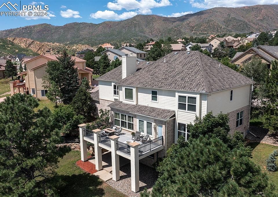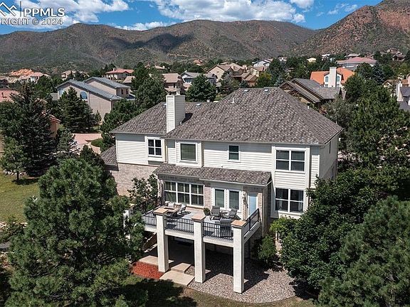 Westside living at its best in this beautifully appointed, exceptionally well maintained, Mountain Shadows gem with panoramic city & foothill views perched atop a private, near-acre lot in one of Colorado Springs most highly desired communities. Pride of ownership abounds at every turn with a stunning, open entry way, high ceilings, gorgeous hickory wood flooring, plantation shutters, abundant natural light, and quality finishes throughout. This impressive home offers a newly carpeted main level office, a bright, inviting family room with fireplace & amazing city views, an updated kitchen with high end appliances that include a GE Profile 5 burner gas cooktop, Kenmore stainless steel double convection ovens, refrigerator, & Bosch dishwasher. Kitchen offers a spacious breakfast nook with walk out to the spectacular composite deck ideal for personal retreat or entertaining with phenomenal city views. Open, bright living & dining rooms complete the main level. Upon entry, an elegant, newly carpeted stairway ascends to 4 spacious upstairs bedrooms. The expansive primary suite provides a luxurious, yet cozy, private sanctuary graced by ample natural light, a double-sided fireplace accented by marble, a generously sized walk-in closet all adjoined by a lavish ensuite with a separate, jetted soaking tub, walk in shower, double vanity & makeup station with beautiful travertine stone tile. Three other upper-level bedrooms are amply sized with inspiring views & plentiful closet space. The full bath has been beautifully updated with impressive finishes. An upper level laundry is convenient & spacious with built-in sink. Lower level offers abundant space for entertaining & guests with its huge 5th bedroom and walk in closet. European shutters add privacy. A walk out with covered patio allows ease of access to the private backyard. Home is an outdoor enthusiast’s dream with Ute Valley Park, Garden of the Gods, & Blodgett Peak Open Space nearby. No HOA. Ten minutes to I-25.