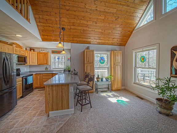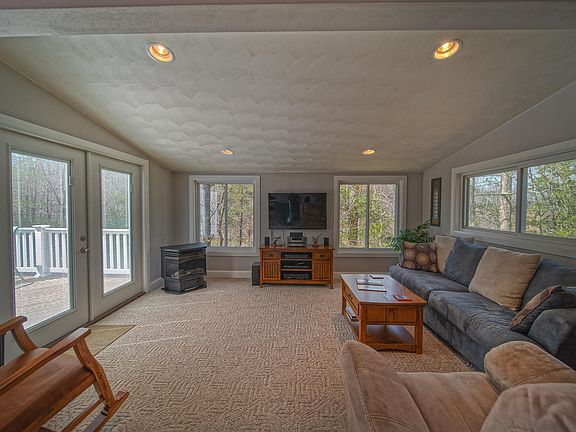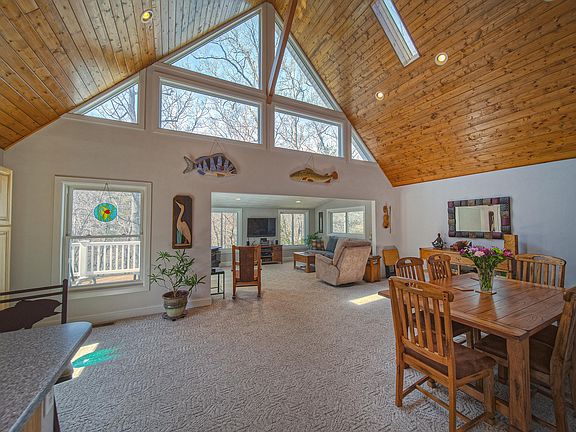 Tucked away on a 5-acre wooded, waterfront paradise, this low maintenance home is perfect for those seeking privacy. It has been meticulously cared for, built & loved by one owner. The boat dock was constructed in 2014 & is an easy walk from the home with a mid-level deck for relaxing on a summer day while enjoying the cool breeze from the lake. Decorated as a 3-bedroom with a 3-bedroom septic & 2 full bathrooms, this home boasts an open-air concept with a full finished lower den with a wood burning stove. New heat pump in 2018, less then 1-year old LG appliances & 2016 BMS Motorsports 4 seater UTV with snow plow included. 2 oversized storage sheds convey & furniture could be negotiable. All you would need to do is move in & enjoy the lake this season. Convenient to Roanoke and Westlake!