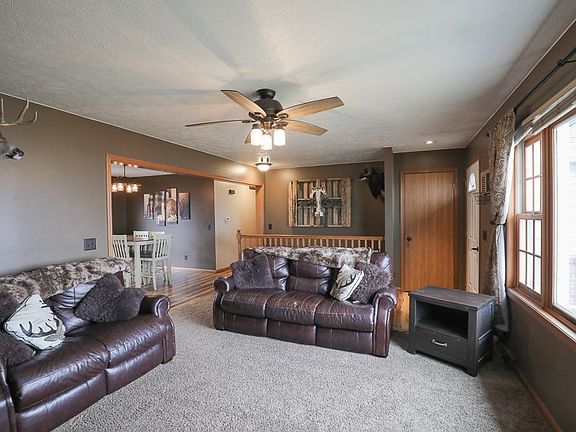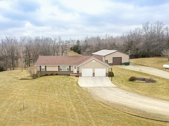 Beautiful ranch home nestled on 1.85 acres w/ mature trees, a great yard, 32x50 heated shop. Perfect retreat setting located just minutes from the scenic & peaceful Lake Belva Deer Campground & Park. Appealing home features a spacious open layout, kitchen w/island opening to LR/dining area. Slider to large 16x34 deck overlooking the private backyard. ML master suite w/private bath & WIC. ML laundry room & 2 additional bedrooms. Walk-out LL family room w/wood stove, bathroom, bonus room & storage space!