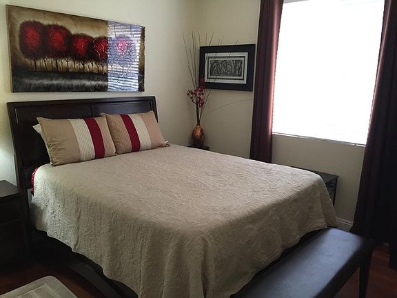 Completely furnished with all furniture you see in photos, All linens, kitchen utensils, dishes, appliances & TV furnished in this adorable, private, ground-level condo. Walk just a block to the movies, restaurants, grocery and other shopping. Ideal location ideal near 73 and 5 off Rancho Niguel Rd near Greenfield. Milano development. Near walking trails too! Nice neighbors. Pool, Jacuzzi, workout room. One bedroom with walk-in closet. Attached garage (without entrance to unit). New HVAC & new easy-care Luxury Vinyl Plank flooring. Full-Size Washer & Dryer in unit Lovely private patio with patio furniture. You wouldn't need a car unless you need to drive to work elsewhere. Will consider a small dog (under 25 lbs) with extra non-refundable deposit. This is a one-year lease. If tenant wants to stay beyond the year, my policy is to only increase rent to reflect my increased costs. For example, if my HOA fees are increased by $30/ month rent is increased by the same amount. In other words, I do not drastically increase rent after the lease is up. I prefer to have long-term tenants. HOA rules require one-year lease. I am not able to offer short-term rentals. Credit rating of 650+ and great references needed. I'll email you application and then show it once I've received your completed application. Call, text or email me! hooperjan@sbcglobal.net Questions? Please call me! I'm the owner - not an agent. Tenant pays utilities. One year lease to tenant with great credit rating and references.