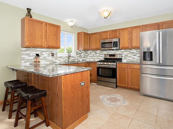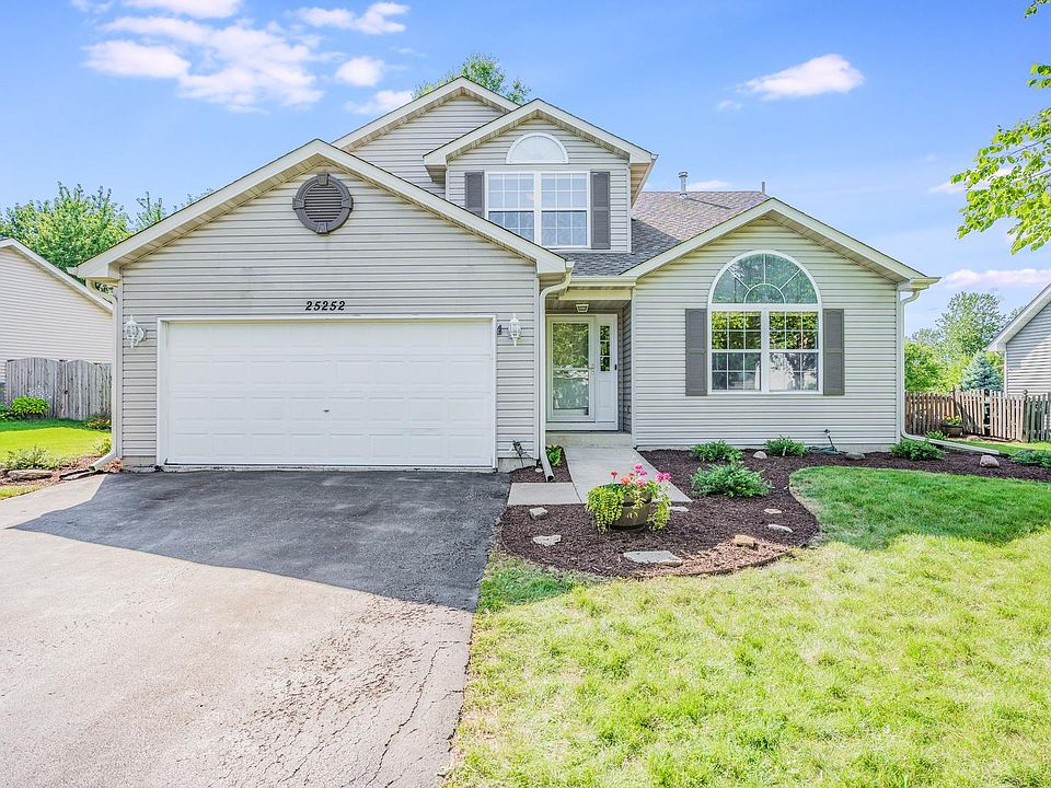 MOVE IN READY spacious home in Hunters Crossing of Channahon! 3 beds 1.5 bath home near 2000 SQFT. Large fenced in lot with 20x14 trek deck, mature trees, and plush landscaping! Large dine-in kitchen features all SS appliances, granite counter tops, load of cabinetry and pantry closet! Open concept floor plan, kitchen opens to family room with hardwood floors and loads of windows with natural lighting. Owner's suite boasts HUGE walk in closet and private entry to large full bath with custom ceiling tiles and expansive vanity. 2 additional large bedrooms. First floor living and dining rooms feature vaulted 2-story ceilings! All Channahon schools & popular park district - bike path, parks and more! Hardwood flooring thru-out most of the home. Laundry/mud room right off garage with appliances staying. Hurry, great home that has been freshly landscaped with great curb appeal.