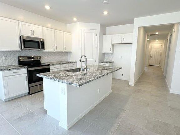 WOW! Great curb appeal! This home features an expansive open floor plan with four bedrooms and 2.5 bathrooms. The stunning kitchen is equipped with white shaker cabinets, elegant, polished nickel hardware, an upgraded single bowl sink, beautiful granite countertops, and a stylish herringbone pattern backsplash. Entertainer's island with a breakfast bar and a spacious walk-in pantry. GE refrigerator, washer and dryer are coming! Features include 8' interior doors, 9' ceilings, enhanced electrical upgrades, a Smart Home system, a soft water loop pre-plumb, and 8' garage door. Tile throughout except bedrooms and closets. The bathrooms are spacious, half bath for guests. GREAT INCENTIVES!