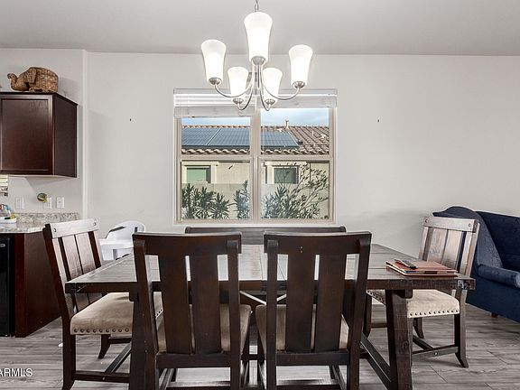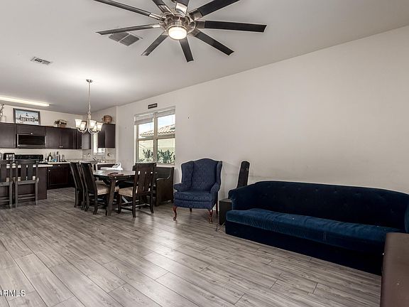 The chef's kitchen is both beautiful and functional, showcasing rich espresso cabinetry, marble-inspired countertops, a generous pantry, and plenty of space for cooking and entertaining. Enjoy easy-care front yard landscaping with a mature shade tree that helps keep things cool during the summer months. (See More) Out back, relax under your covered patio with no neighbors behindthe perfect private retreat for family gatherings or quiet evenings. Why wait for a new build when you can have it all now? Discover comfort, style, and value in this move-in ready home. Conveniently located near shopping, dining, and with easy access to the I-10 freeway, this is Buckeye living at its best!
