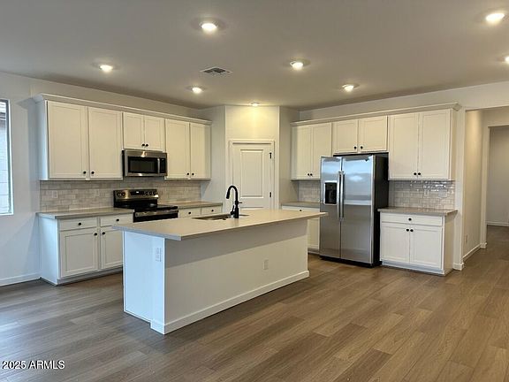 Start packing, you found IT! Home has four bedrooms, an office and 2.5 baths! Energy efficient, radiant roof barrier, Smart Home includes video doorbell, thermostat, garage door opener too. Ceiling fan prewires in all bedrooms, soft water loop in garage. Dream kitchen with lots of 42'' white cabinets, 3'' crown molding, matte black knobs, 3''x6'' stair step ceramic tile backsplash, beautiful quartz counters. Large island, breakfast bar, single bowl sink, GE stainless steel appliances. Matte black fixtures throughout, half bath for quests, bathrooms include white linen quartz counters. Split, spacious bedrooms, lots of closet space, dual sinks in primary & bath two. LVP flooring, stylish 12''x24'' staggered tile in wet areas, upgraded carpet. GREAT incentives!