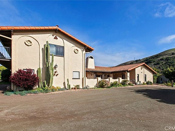 If you’ve ever dreamed of a peaceful hacienda near the coast, this 6-acre property is the perfect spot. Just 4 miles from Morro Bay, you get the fresh ocean air without the coastal fog—plus, you’ll have your own boutique avocado farm! Pass through the wrought iron gate, and discover a charming home where classic hacienda style meets modern comfort. Saltillo tile, warm wood accents, and a welcoming courtyard create a timeless, relaxed vibe. The open living and dining area is made for gatherings, featuring a built-in buffet, a cozy fireplace, and French doors that open to the courtyard. The kitchen boasts handpicked tile, a pantry cupboard, two ovens and flows into a bright family room with backyard views and a wood-burning fireplace accented with Mexican tile. Adjacent to the family room you will find a spacious office giving you extra space to work or create. The primary suite has two custom walk-in closets, a spacious ensuite with a tiled shower, separate tub, and dual sinks. Two more bedrooms down the hall have generous closets and peaceful views of the avocado grove. A large laundry/mudroom also includes a bathroom, complete with shower—is handy for cleanup after working outside or surfing. Upstairs, the separate apartment above the 3 car garage gives you options—guest space, rental income, or room for extended family. It is equipped with a full updated kitchen, a great room with 2 balconies, and a spacious bedroom with its own balcony and ensuite. This space is enhanced by panoramic views from every window and balcony. Outside, the 217-tree avocado grove is set up for small-scale farming, and there’s also a fenced 2-acre pasture is currently being used for livestock, suitable for horses as well. The 720 sq ft metal garage has a new, well thought-out workbench and cabinets, great for projects and storage of farming supplies, tools, etc. With wide-open space, beautiful design, and a prime location near the beach and wine country, this is a special place to call home! Seller is available to consult on avocado farming. https://view.knapp-media.com/order/f58d34d3-7a99-4883-3851-08dd3195081a?branding=false