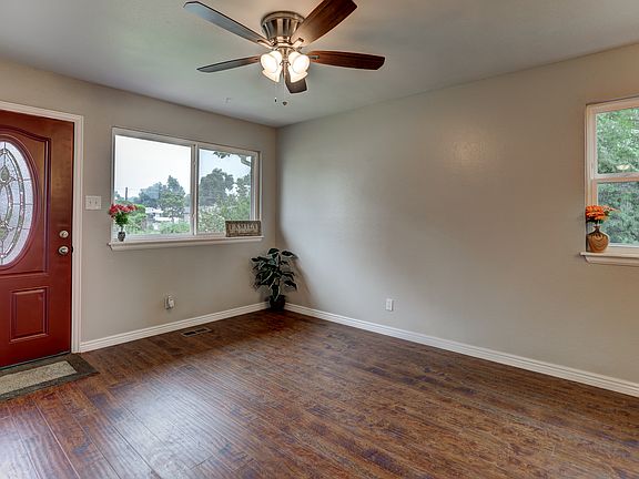 Updated and move in ready! This home has been updated with newer flooring throughout, paint, trim, lighting, windows as well as fully updated kitchen and bath. Living and dining combine, spacious kitchen boasts tons of cabinet and counter space. Three good sized bedrooms with newer carpet and fully updated shared full bath. Hallway features charming builtin cabinetry original to the home. Both front and back yards are fully fenced. Back yard with mountain views, storage shed, mature trees and stamped concrete patio. This home is conveniently located near parks and school with easy access to shopping and entertainment. Close to Fort Carson as well as the Academy Blvd corridor and I-25. New roof Feb 2019!