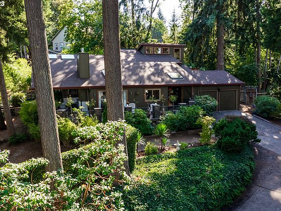 Custom tri-level home privately located in the SW hills of Eugene. Interior features vaulted cedar ceilings, 12 skylights, wood windows throughout, french doors, wine cellar, two fireplaces one with rock that has been quarried from the property, brazilian cherry wood floors, clear fir wood staircase done in Greene and Greene style, great separation of space with bonus area's, new silestone quartz counter in the kitchen, new range oven with cooktop, and wine refrigerator. Features of the exterior are a 6 year roof, cedar siding, large covered area's with tall pillars, stamped concrete and skylights, 3 gas stubs, potting shed with skylight, unfished art studio or many number of uses.