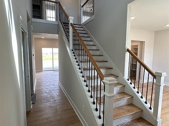 4 bed, 2.5 bath new construction in Eudora's Shadow Ridge. This 2 story home has so many upgrades! Main level features an open floor plan with a gas fireplace, custom kitchen cabinet layout, quartz countertops, SS appliances, and separate dining room. Upstairs boasts an oversized master suite, 3 additional bedrooms, PLUS upstairs laundry room. The garage has an extra 18x4 storage space with 8" reinforced concrete room. A covered front porch, covered back patio, and lot backs up to the middle school.