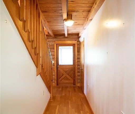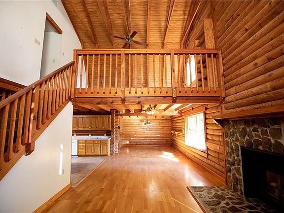 If you are looking for a log home tucked into the beautiful countryside with a serene and peaceful setting you have found your home. Enjoy sitting on the front porch on those fall crisp mornings. Or find yourself enjoying a cup of morning coffee by the large picture window in the dining room. From here you can watch the birds, deer, and other wildlife. The "cabin" is a perfect place to enjoy the seasons changing. With 29 acres you can have chickens for fresh eggs, goats--because who doesn't want a goat?, gardens and places to hike and enjoy the great outdoors. The garden areas have been established and given the gifts of asparagus and strawberries. The inside of the home has so much space to spread out. The main level boasts a huge dining room, living with stone fireplace, and kitchen. The flow of the house is perfect for large family gatherings. Main level also have a master bedroom, full bath, laundry room and tons of storage. Upstairs boasts a loft with an overlook to the great room below, a cat walk with views of the fireplace and living room, 3 bedrooms and a full bath. The basement is home to the oversized 2 car garage, storage and room for future expansion.