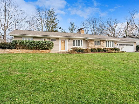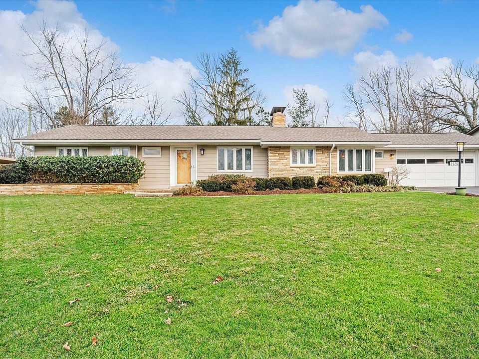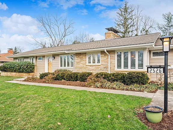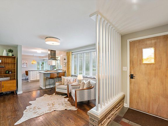 Don't miss this unique, sprawling, mid-century ranch with TONS OF UPDATES. Open living room with vaulted ceilings, refinished hardwood floors through entire main level, a wall of floor-to-ceiling windows, & a double-sided gas log fireplace add classic elegance. The completely updated kitchen with soft-close cabinets, granite counters, stainless steel appliances, & a large pantry is open to the living area. Laundry is conveniently located on the main floor. You'll find 3 nicely sized bedrooms with renovated ensuite featuring a large walk-in shower. A spacious finished basement with wet bar & new flooring is ideally suited for entertaining. Additional features include a newer roof & mechanicals, Nature Stone covered patio, large fenced yard with beautiful landscaping, & so much more.