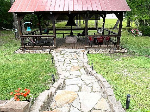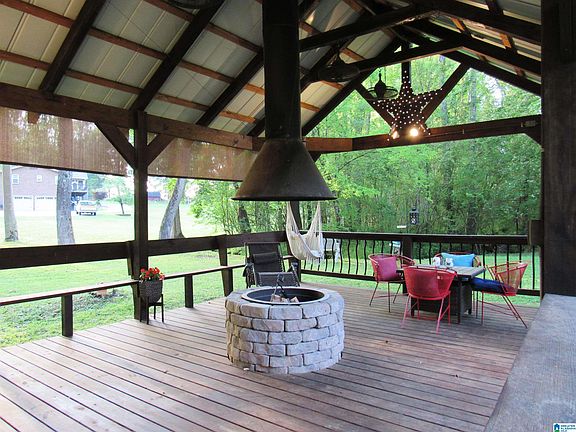 LARGE PAVILION, FIRE PIT & HOT TUB with a flowing creek around the property in a park like setting. Outdoor entertainment at its finest. This beautiful home has 3 bdrm with lg. closets & 2 full baths. Owner’s Suite w/2 walk-in closets, tray ceilings & a soaking tub. Throughout are high ceilings, recessed lighting, tall windows, arched walkways, brick fireplace & wood flooring. Quality built 24x15 pavilion with stone firepit, built-in benches, power, lighting, fans, roll up shades & a mount for your outdoor TV. Storage building 13x9 with a metal roof & lean-to added. Well maintained. Architectural roof 2019, newer hot water heater, gutter guards, garage door opener, bedroom flooring. HVAC serviced regularly, low utilities, NO HOA. 1 year home warranty included, Broker is Owner, the home is currently taxed as a second home. Walking distance to SS High School, Police & Fire. Southside is rated the 3rd safest city in AL.