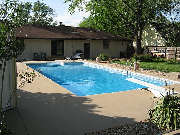 An extremely well built ranch home in the Shawnee Heights school district and only blocks away from the Lake Shawnee baseball fields and the walking/bike paths around the lake. Just blocks from Shawnee Heights Elementary School and easy access to I-70. This house contains 3 bedrooms and 2 bathrooms on the ground level. Dining room and kitchen include an eat-at counter. Wood burning stove (with blower) located in the main living room offers a great alternative to winter heating. Both bathrooms have been recently remodeled. Large closets in each bedroom with storage areas throughout the house. Over-sized, two car garage with attic storage. Beautiful landscaped large lot with in-ground pool (appx. 20ft x 40ft). Pool is clean and ready to swim. Pool liner was recently replaced and contains a solid (trampoline style) cover for off season safety. The basement is wide open and ready to customize to your needs. Walls are finished with drop ceilings. Basement also offers a fireplace and additional storage areas. Please let me know if you are interested in this home and I would be happy to show off this amazing house near Lake Shawnee.