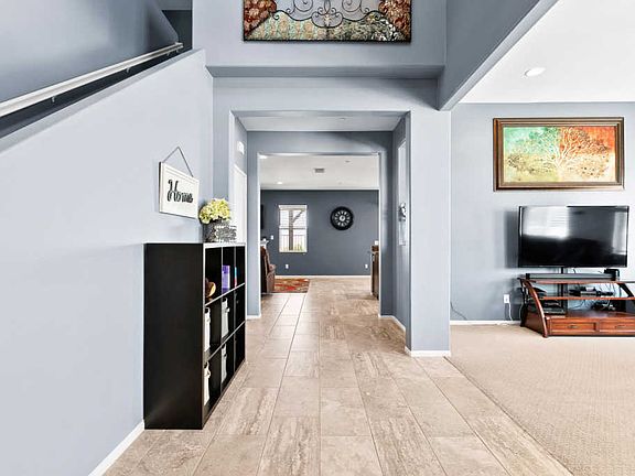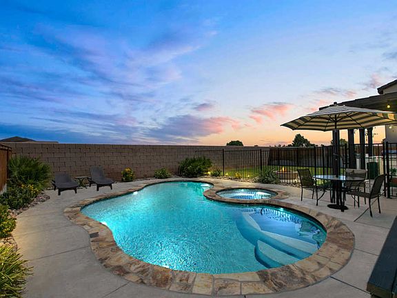 This gorgeous 5 bedroom pool home will have you falling in love the moment you walk through the door! The home is in pristine condition with ALL the upgrades! Kitchen and bathrooms have uniformed granite throughout. The carpet is upgraded and plush and the tile is the 12''x24'' porcelain tile. There are matching upgraded fans in all rooms and custom paint throughout the home. There is a downstairs bedroom with a full bathroom. Upstairs in the master bedroom, the ensuite bathroom features his and hers sinks, his and hers closets and separate shower and tub. Upstairs you'll also find a office nook as well as a large laundry room. Outside is set up for rest and relaxation. There is a heated custom pool and Jacuzzi with a self-closing wrought iron safety gate surrounding it. The outdoor kitchen has a stainless steel BBQ, mini fridge and room for the whole family to pull up a seat & eat at the outdoor bar. The patio covering and cement is custom and all patio furniture is included.