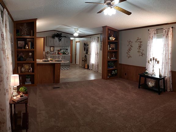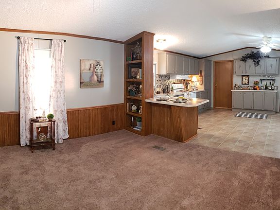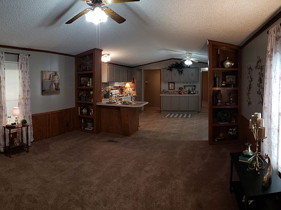 A Jet Setters Dream Home! Our wonderful retirement community invites you to view this home, that is intended to remain In Grand Villa Community: This incredible home is perfect for the person who wants it all but knows the importance of watching their pennies. Fall in love with the rich coppers, chocolate browns and gold colors of this 16’ x 80’, 3+2 lavish home as you step out of your shoes and onto the soft plush new carpet and feel the comfort of this wonderful dwelling. The living room’s vaulted ceiling showcases a handsome copper inlaid fan, one of several in this fabulous home. The rich wood toned Beadboard wainscot wraps around the space ending at duel bookcases which flank the entrance to the open kitchen. If you love to relax in your favorite chair, to read the evening away, you will greatly appreciate these two large bookcases which will easily hold your treasured classics and beloved newly released novels. Entertaining your family and friends is made easy in this large kitchen/dining area. Not only is this room loaded with cabinetry, including a pantry, it also has a large buffet with overhead cabinets allowing you to put on a feast for your guests. Maybe you are a member of an upscale wine club and enjoy having members over to taste the exquisite wines you have toted back from your latest Napa Valley vacation; either way your guests will be delighted with your soirée and impressed with your exquisite kitchen. In addition, the eat-at-bar will provide you with extra seating or more area to display the delectable food you serve with your wines. All new countertops, in the latest style, reflect the beautiful copper and bronze colored tiles creating an elegant and sophisticated kitchen. No problem fitting your large side-by-side refrigerator; the room has been designed to fit any sized refrigerator made. A wonderful surprise greets you as you enter the utility room! This room is huge with two entrances, one off the kitchen and the other close to the master bedroom. You will be pleased to know you have room for a freezer, additional shelving, an out of the way office or any other fabulous idea you can come up with. It is a combination of utility room and bonus space. Enjoy! The master bedroom is a wonderful size and will accommodate a king size bed with ease. Off the bedroom you will find a large walk-in closet which includes shelving for extra storage. If you enjoy a warm soak before bed you will love this master bathroom with its corner spa tub. What a great way to relax and dream of your next vacation to wine country. This perfect bathroom also has a shower and a tall linen stack for storing lots of soft white towels, soaps and oils; all you need to pamper yourself. With two remaining bedrooms you can create anything your heart desires from a great workout room to the perfect office. The choice is yours. This home is located in, and is intended to stay in Grand Villa Community. Grand Villa is a quiet retirement community, the only one of it's kind, in Springfield, Missouri! Lot rent here starts at $295 a month for 2 people and includes your water, sewer & trash.