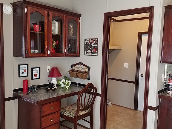 This incredible 16'x80' three bedroom, two bath manufactured home treasure is perfect for the active mature couple or a retired single who just can’t sit still. Do you love gardening, woodworking, spending time outside puttering around? Do you live to create gourmet meals for an elegant dinner with your friends or are you a huge hobbyist and just can’t get enough of it? Fantastic! It’s time to stop looking, your new home awaits you. As you drive up to this one of a kind home you can’t help but notice the brilliant multi-leveled covered porch and the large storage shed. The lot is beautifully landscaped with Arborvitae Evergreens, Dwarf Round Boxwood, Sky Pencil Holly and more. Delightful annual flowers of blue, yellow, and purple corner the porch leading you down the stone path past the designated barbecue area on to the huge shed. This enchanting outside playground will keep you active and young while appreciating the beautiful outdoors. Evenings will find you enjoying a cool breeze while you sit lazily relaxing on the large covered porch deciding what annuals you will plant as the winter melts to spring. This fabulous home will conform to your every need. As you walk through the front door you will be taken aback by the rich beauty offered in this wonderful home. With its deep rich Cherry wood tones and high vaulted ceilings, you will feel right at home. The deep Cherry colored wainscoting adds dimension to the room while offering a rich backdrop for any decor style. As you enter the large kitchen you will find an abundances of Cherry wood toned cabinets with duplicate China hutches skirting the floor length triple windows. The Z shaped island is loaded with storage space and allows the gourmet Chef plenty of counter top space to create their culinary masterpiece. The room can easily fit a nice sized table in front of the glorious windows. Another special feature is the desk with overhead cabinets just perfect for planning your meals or working on the computer looking up the newest flowers coming out this spring. The utility room is off the kitchen with an open interior door to close off any noise. The back door enters into this room which is perfect after a day of working in the garden; just toss those dirty clothes right in the washer instead of tracking through your home. The utility room has additional storage for household cleaning supplies, brooms, mops and a vacuum. Into the master suite and you will see the bedroom can easily fit a king size bed with night stands and offers a walk-in closet. The on-suite bathroom is bright and cheery with lots of natural light. A large one-piece shower with glass doors along with an elegant soaking tub gives you the choice of a quick cleanup or a luxury bath to relax your hard-working muscles. If indoor space is needed for your “can’t get enough” hobby one of the two spare bedrooms will fit this need. You will have room for an exercise retreat, office, library or just a guest bedroom while the second bathroom is located off these two rooms. This 1996 Carriage home has new paint throughout along with new carpet and C/A and heat. Located in Grand Villa Community, Springfield's premier 55+ community. Retire in style, without comprimise! www.GrandVillaCommunity.com