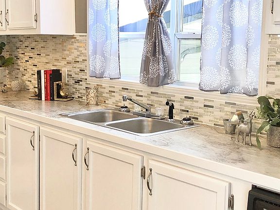 Our wonderful retirement community invites you to view this home, that is intended to remain In Grand Villa Community: This 16' x 70', 2+2 1996 Patriot home is LOADED!!! When it comes to high-end homes, it's hard to count the many extras that send this home to the front of the pack. Starting with its unique front kitchen, which is brimming with brilliant white stunning cabinets, a spectacular tile backsplash composed of au courant chrome, grey, and white tiles, fabulous new countertops with oak edging and a new dishwasher. The large architectural window over the kitchen sink allows the light to flood in generating a metallic sparkle off the chrome tiles and the incredible barn tin ascent wall. The gorgeous plank flooring ties the whites, greys, and silver tones together while giving a clean fresh look to the room. With plenty of counter space for the gourmet cook or for entertaining you will never tire of this fantastic beautiful room. You will be a shining star in your own new kitchen. Along with an abundance of cabinets, there are two pantries, one being a closet style allowing you plenty of storage room for your cooking wears. Friends will be green with envy when they come to visit your new home. The living room is open to the kitchen with two large windows. The room is functional and easily arranged with your furniture. All rooms have vaulted ceilings in this home, enhancing the rooms height and opening spaces. The second bedroom is nice sized with a large window and closet. The second bath is beautiful with its new countertop and tile backsplash. The one-piece shower/tub combo is clean and attractive. The master bedroom is very large with closets along one wall. In the master bath there is a double porcelain sink vanity, a nice sized linen stack cabinet with an additional large walk-in closet. The plank flooring in this room is waterproof and looks beautiful as it ties the rooms decor together. The new thermal pane windows will insure your heating and cooling bills stay affordable while you remain cool in the summer and toasty during the winter months. Heavy-duty 2 x 6 exterior walls along with perimeter heating continue the theme of this high-end home. A new shingled roof has been installed along with new skirting. All our homes have C/A and Heat. The lot is an oasis of lush plants grasses and large trees shading the home in the summer to creating a cooler climate. The birds are in abundance but with the double carport there’s no concern of them targeting your freshly washed vehicles. Everything about this home and its setting are perfect. Once you move in you will be happy to reside in this lovely home for a very long time. This home is located in Grand Villa Community, Springfield's premier retirement community. The homes are intended to stay in this community. Lot rent starts at $295 a month and includes your water, sewer & trash. Scroll down to see our video tour of this magnificent home!