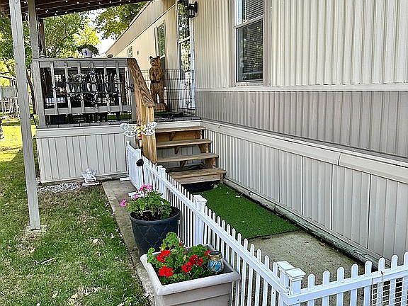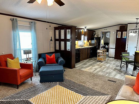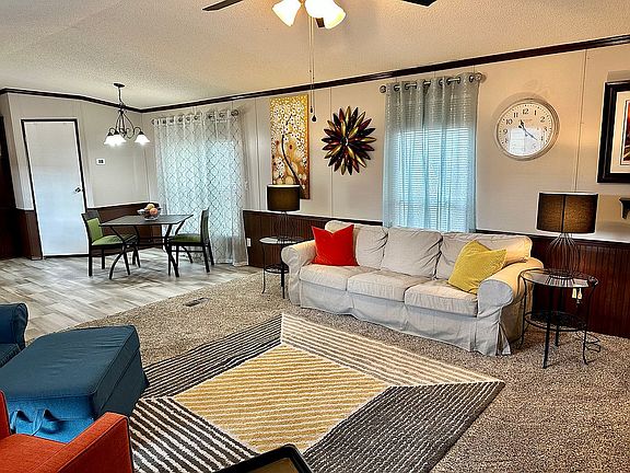 1998 Spire Mobile Home in +55 Park located in Grand Villa MHP. 3 bedrooms, 2 bathrooms. Enclosed laundry room. Walk in closet in master bedroom. 2 covered porches both with built in steps. 2 car carport. Large shed for storage with electric in it. Lots of beautiful trees which provide amazing shade. Very quiet park with great neighbors. Pet friendly for dogs under 25 pounds. Oh and I am just around the corner from Cruse dog park. Lot rent is 365 which includes water and trash. Must be approved by park management. Cash only sale. But can get your own financing through 21st Mortgage corporation. No renters. Lot 59