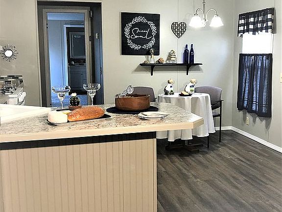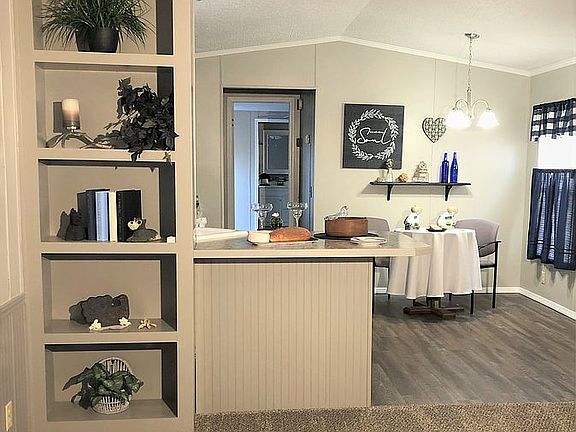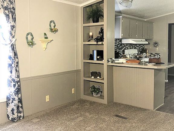 Cottage Dream Home Years of low maintenance and easy living can be yours!!! Come join our quiet, clean 55+ community. The Home This sweet 14x70 2 bd, 2 bath home has everything you are looking for. Starting with the covered deck which leads to the double carport keeping you nice and dry during inclement weather. If walking up steps are a problem for you this home has the solution, a ramp with rails creates an easy walk from your car to the home. The storage shed is perfect for any outdoor gardening items or other gear you might need to store. A nice white sealant has just been applied to the roof giving this home years of protection while keeping it cooler in the hot summer months. Superior heavy duty exterior paint was used to paint the home, shed and deck, again safeguarding this home from the weather. The interior has been given the same attention as the exterior. New paint, carpet, plank flooring, countertops, bathtubs and tubs surrounds, toilets and more have been installed insuring the buyer a low maintenance clean and beautifully decorated home. This home also features a brand-new central air system and steel front door. The only thing you have to do is move in and enjoy your easy low maintenance living. Description of Home As you enter through the front door the living room offers vaulted ceilings, elegant two toned walls featuring Stone Grey Beaded-board with a soft Dove Grey colored wall gives a subtle color change to this distinctive room. Two large bookcases frame the entrance to the open kitchen/dining area giving you plenty of room to display your cherished books and favorite accessories. The living room affords just the right amount of space to create a cozy room for you to enjoy. Sink down into your favorite comfy chair with your favorite book and cup of hot tea, life is good! As you walk into the kitchen the dazzling mosaic tile backsplash will catch your eye. The tile, with its Smoky Blue, White, Chrome, and Oyster Grey colors complement the painted cabinetry beautifully. You will enjoy entertaining your friends in this bright, luscious kitchen as you serve them a sparkling glass of wine and dish up a fun tidbits of gossip. The master bath with its nautical theme brings this space to life. The wide striped navy and white shower curtain along with navy towels and accessories will guarantee this room is a pleasure to use. This home will not disappoint. "Our homes are intended for individuals wanting to reside in our 55+ Community" Lot space $310 a month & includes water, sewer & trash. Please call for a showing for 417-299-7957