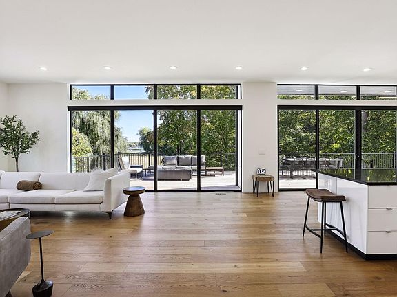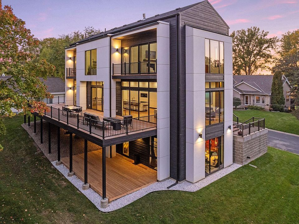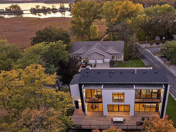 Stunning, modern oasis nestled just steps away from picturesque Lake Minnetonka on a quiet cul-de-sac. Featuring floor-to-ceiling windows with lake views in every room, inviting the beauty of nature and flooding the space with natural light. This smart home has been carefully crafted to provide ultimate convenience and comfort with automated programming, remote and app-based control, ensuring your living environment is always tailored to your preferences. Kitchen is equipped with top-of-the-line appliances, including an in-wall coffee machine, convection oven/microwave combo, hidden refrigerator and freezer, sound-activated dishwasher and built-in wall oven with Wi-Fi capabilities. Step out onto the large deck, accessible from the living area, and savor the breathtaking views. Ground floor features a walkout area, extending your living space and providing a seamless connection to the surrounding natural beauty.