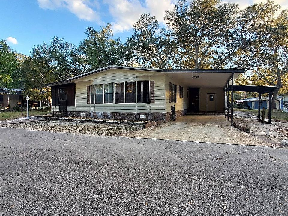 SPACIOUS OPEN FLOOR PLAN WITH PLENTY OF STORAGE, 1248 SQ FT OF LIVING SPACE!! 10X20 FLORIDA ROOM, WALK IN CLOSETS IN BOTH BEDROOMS, WALK-IN SHOWER IN MASTER, AS WELL AS SOAKER TUB, BREAKFAST BAR AND DINING ROOM, LARGE LIVING ROOM, LARGE COVERED CARPORT WITH UTILITY ROOM, INCLUDES WASHER AND DRYER, WORKSHOP AND WIRED, STAND ALONE 8X8 STORAGE SHED, NO NEIGHBORS BEHIND OR IN FRONT, LIFETIME ROOF OVER, CENTRAL HEAT AND AIR APPROX 6 YRS OLD, NEWER REFRIGERATOR, UPDATED FLOORING, NEWER ELECRICAL BOX TOO. BEAUTIFUL, WELL-KEPT PARK WITH FISHING PIER, HEATED POOL AND CLUBHOUSE! TOO GOOD TO PASS UP! CALL NOW TO MAKE IT YOUR OWN! OM3302