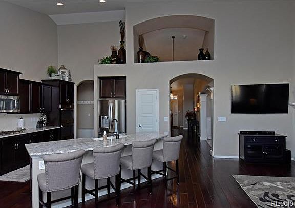 Why wait for new constructions when you can purchase this gorgeous ranch home with fully finished basement and amazing mountain views! Welcome home to this fabulous 4 bedroom 4 bath home w/separate office, dining room & huge open concept kitchen and family room! No detail has been overlooked, from the custom lighting, window treatments,paint, flooring & more! The main floor is perfect for entertaining with vaulted ceilings & views out to the large backyard. The master suite is an oasis at the end of the day with a 5 piece en suite bath & walk in closet w/pass through to the laundry room. There is an additional bedroom & full bath on the main floor. The fully finished basement includes 2 additional bedrooms, office/den (which could be 5th bedroom if needed) full custom bath, large rec room w/wet bar area & 2 storage rooms. Enjoy the sunsets from your back patio & fire pit area! Don't wait, see this home today!