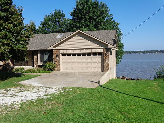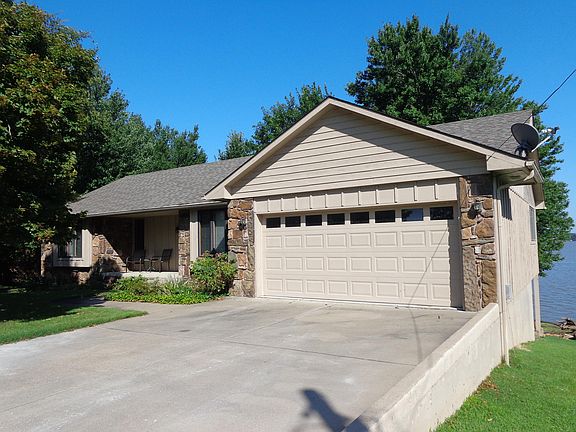 THIS FIRST TIME ON MARKET WATERFRONT HOME LOCATED ON DEAD END ROAD is waiting for you to come take a look! 2 story very well built rock/cedar siding home with a retaining wall and gentle walk to covered dock. 3 or 4 bedroom, 2 full bath, plus sun room overlooking lake and walkout basement on lakeside. Windows oversized wood faced Andersen double paned casement. All cabinetry, baseboards,etc. is solid red oak stained pecan semi-gloss. Small workshop in lower level along with a family room with wood burning fireplace. Whirlpool appliances, most new, water softener system, oversized 2 car garage w/built in storage. Tons of built in storage, closets, china cabinets, bookshleves. Skylight in kitchen. Outside storage area.