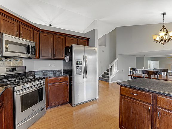 Nestled in the sought-after Hunter's Crossing neighborhood, this charming home is perfect for a young family seeking both comfort and convenience. Situated alongside a serene open area with a walking/biking path, it offers endless opportunities for outdoor adventures. Step inside to discover a recently updated kitchen adorned with sleek granite counters, stainless steel appliances, and a cozy breakfast bar, ideal for quick family meals or entertaining friends. The kitchen seamlessly flows into a spacious and sunlit family room, complete with sliding doors leading to the backyard oasis. Upstairs, the master bedroom boasts a vaulted ceiling and a generous walk-in closet, providing a peaceful retreat after a busy day. The finished basement offers additional living space, featuring an expansive rec room perfect for playtime or movie nights. Outside, the professionally landscaped yard is fully fenced-in, creating a private haven for gatherings and relaxation. Enjoy the deck with awesome pergola, perfect for making memories with loved ones. With approximately a 9 year old roof and gutters, as well as professional interior painting, this home is move-in ready and waiting to welcome your family's next chapter.