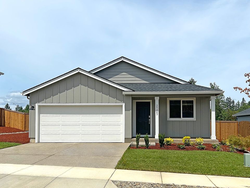 Step into this Move-In-Ready Alderwood: a charming brand-new single-level home that welcomes you with a cozy covered front porch and invites you into a beautifully designed interior that blends comfort with functionality. As you enter the great room, you'll find it's already been pre-wired for a fan and TV—you’re met with ample recessed lighting and streams of natural light pouring through large windows and a sliding glass door, creating a bright, airy ambiance that flows effortlessly into the backyard. Out back, you'll find an irrigated lawn and a fully fenced yard—an ideal space for pets to play, private outdoor lounging, or entertaining with friends and family.Inside, the Alderwood offers three thoughtfully placed bedrooms, with the primary suite featuring its own private bathroom and a spacious walk-in closet, creating a serene and stylish retreat. Every surface is touched with sophistication, thanks to sleek quartz countertops that elevate the kitchen and baths alike. Tremendous value is found in the home's solid construction and includes essential appliances such as the fridge, washer, dryer, blinds, and air conditioning—saving you hundreds in out-of-pocket expenses!This move-in-ready gem is crafted for both everyday ease and long-term peace of mind, with built-in warranties and enduring quality throughout, helping make the dream of homeownership not just possible—but comfortably within reach! Sample photos, so call & come in for a quick tour: 25235 Todd Way, Veneta OR 97487