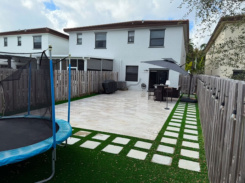 Biggest twin home model in Campo Bello! Right next on exit 9 Turnpike, one minute off, calmed and friendly neighborhood. Last street of the community, no homes across the street, less crowded and more parking options . Has 4 bedrooms and 3 and a half bathrooms, one car garage, biggest patio and is tiled, Ready to enjoy! Clubhouse with gym, pool and kids park. Security patrol throughout the night. Available March 1st No oversized commercial trucks, boats or RV's allowed to park on driveway or street. Renter is responsible for utilities like electricity and water.