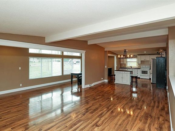Open floor plan with farmhouse charm, vaulted ceilings, and updates throughout located on a corner lot. When you enter this home, you will be amazed because it looks nothing like a typical ranch. Once you step inside, you will begin to notice the little touches that add to its charm such as ceiling beams or the barn board in the dining area. Multiple windows in the dining area provide tons of natural light while overlooking the patio and large backyard. Light and airy best describes the kitchen with Corian counter tops and sink. The lower level has a large family room, new windows and a full bathroom with Corian vanity top. This home has so many charming attributes you will glad you came to see for yourself.