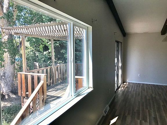 Roomy split level corner house in nice neighborhood. Located on the bus-line, close to Spring Creek trail and Rolland Moore park, easy access to CSU, Vet school, and shopping. Great layout with 2 bedrooms and bath on each floor. Huge kitchen with eating area. Living room and dining room on main level. Dining room sliding doors open to deck views of Horsetooth Rock and huge fenced back yard. Fireplace in family/recreation room. Attached, oversized 2-car garage. Tenant pays all utilities. No smoking. Allow one small dog (40 lbs or less) with additional $25/mo pet rent and $300 non-refundable pet deposit. Breed restrictions. No cats.